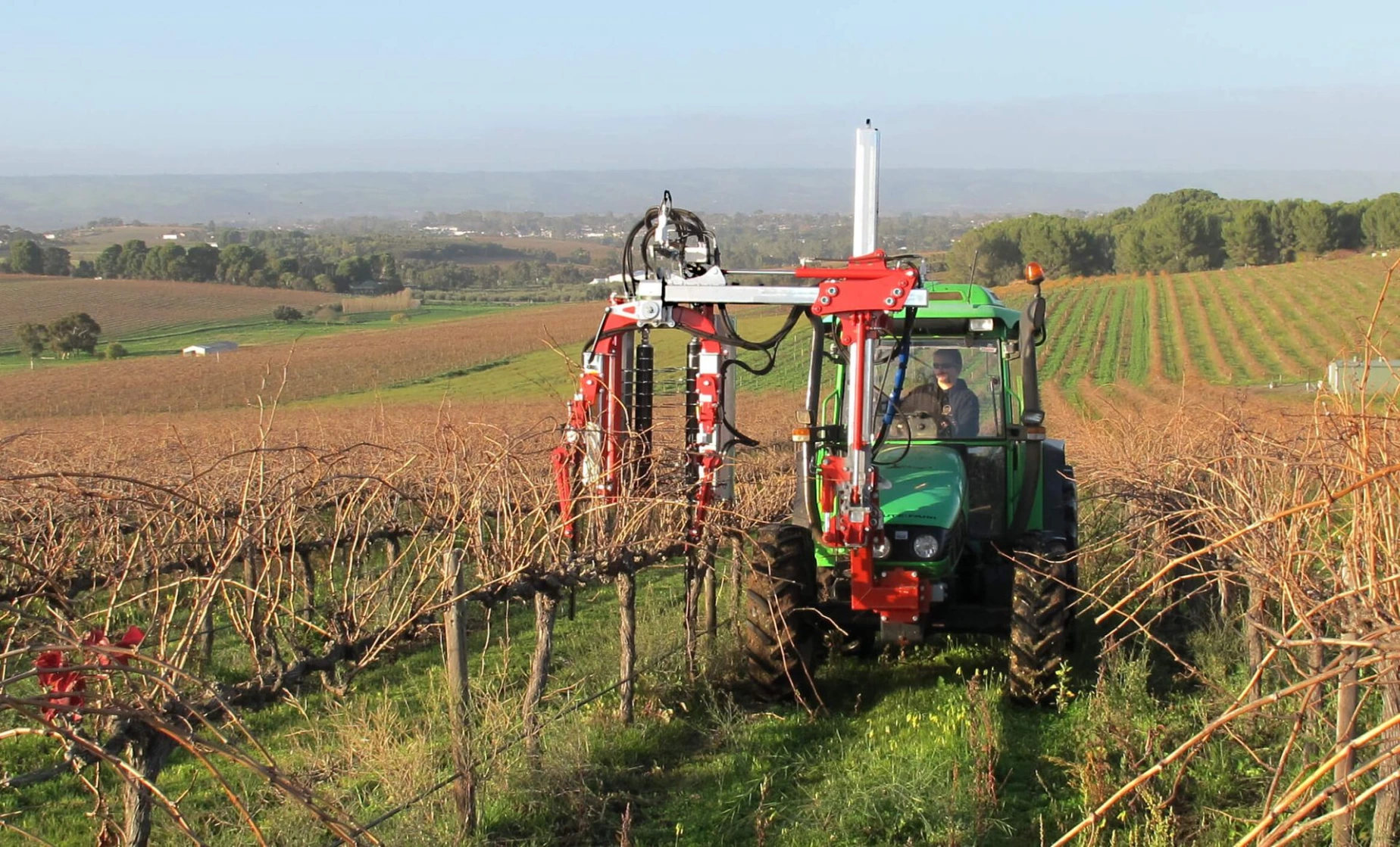 Clifford says two configurations are available, first with independent height adjustment on all four heads or second for vineyards with more gradual terracing an outer row only option.